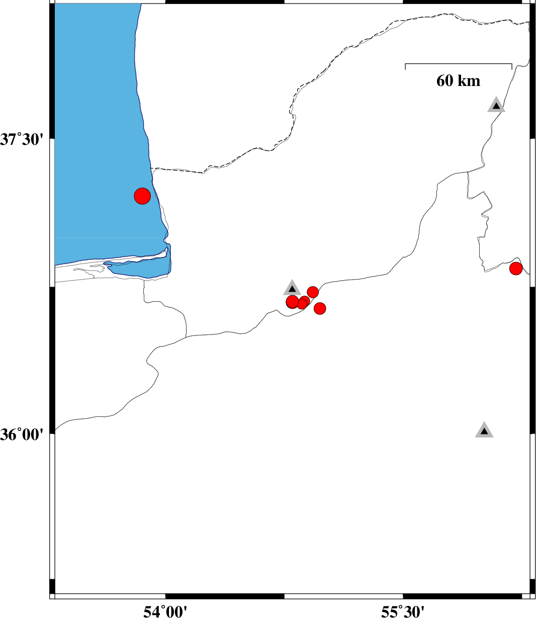 2025/09/27 | 12:04:46.0 | 15:34:46.0 | 37.209 | 53.853 | 14 | ML:4.7 | Caspian Sea, 39 km North-West of Bandar-e torkaman | ||