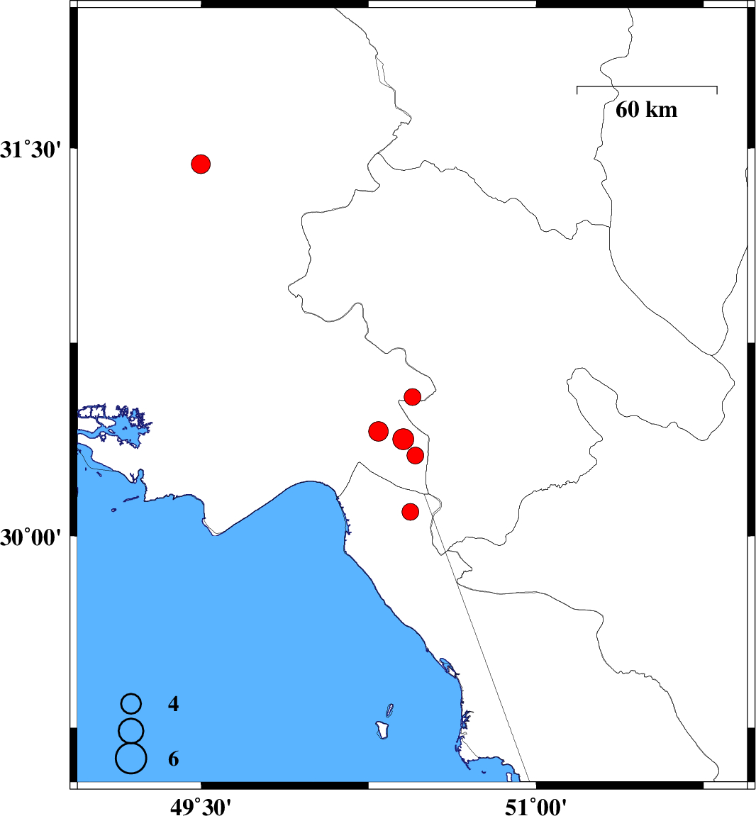 Map Region : lat:29.038-32.038  lon:48.946-51.946