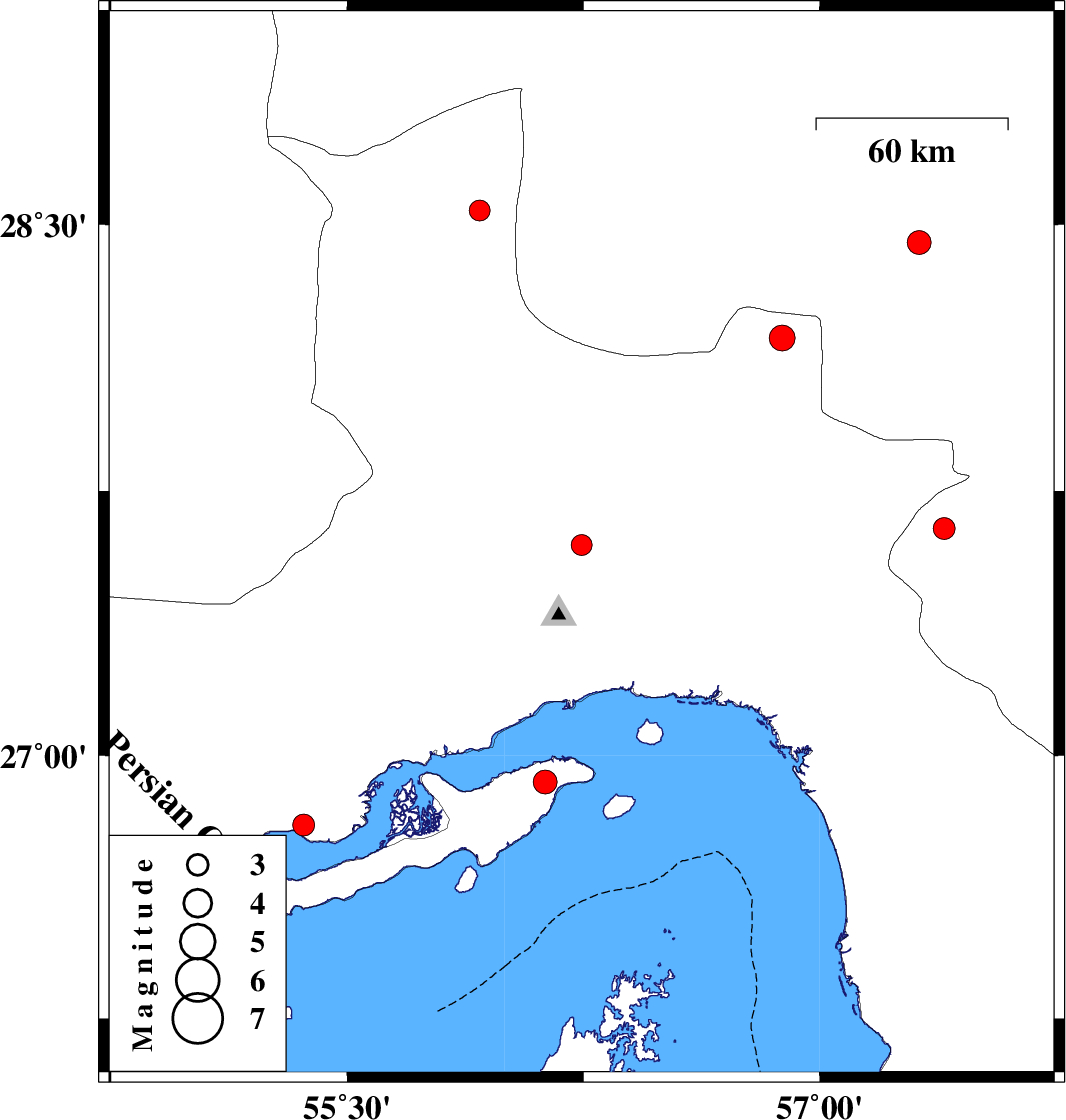 | 2025/10/03 | 22:13:07.5 | 01:43:07.5 | 26.925 | 56.129 | 12 | ML:3.4 | Persian Gulf, 14 km -West of Qeshm | ||