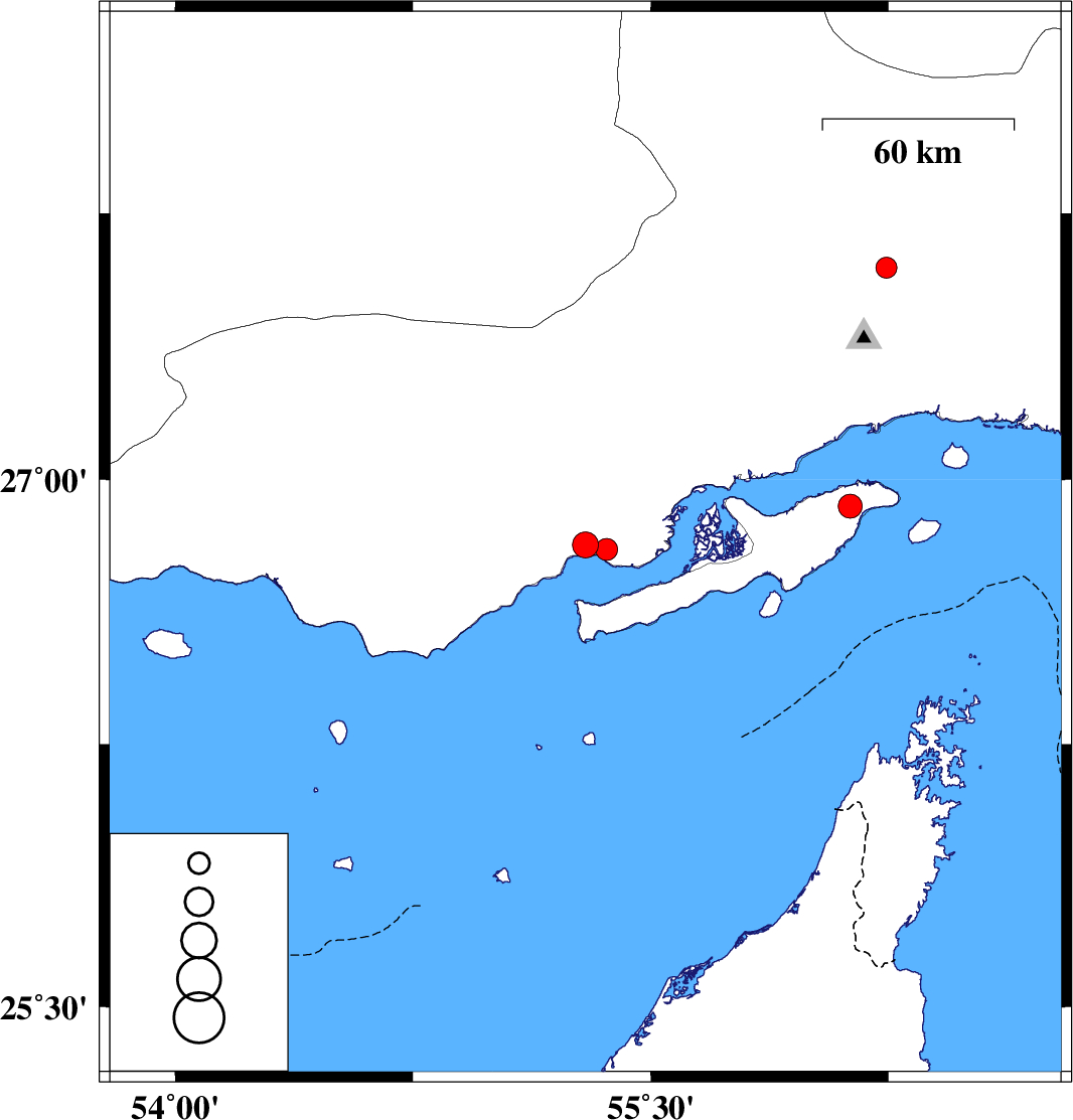 | 2025/10/03 | 22:13:07.5 | 01:43:07.5 | 26.925 | 56.129 | 12 | ML:3.4 | Persian Gulf, 14 km -West of Qeshm |