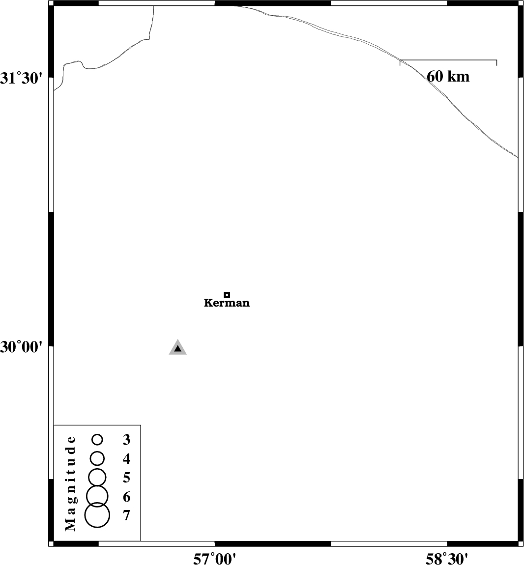 | 2025/10/26 | 19:23:56.9 | 22:53:56.9 | 30.397 | 57.459 | 9 | ML:3.6 | Kerman Province, 38 km North-East of Kerman |
