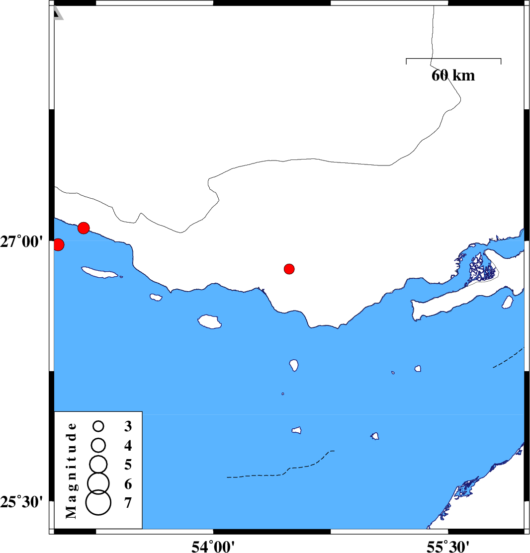 | 2025/10/30 | 00:10:47.7 | 03:40:47.7 | 26.977 | 53.008 | 12 | ML:3.5 | Persian Gulf, 43 km South-West of Lamerd | ||