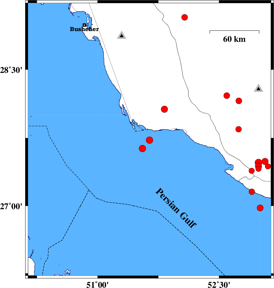 Bushehr Province, 35 km North-West of Bandar-e kangan | |