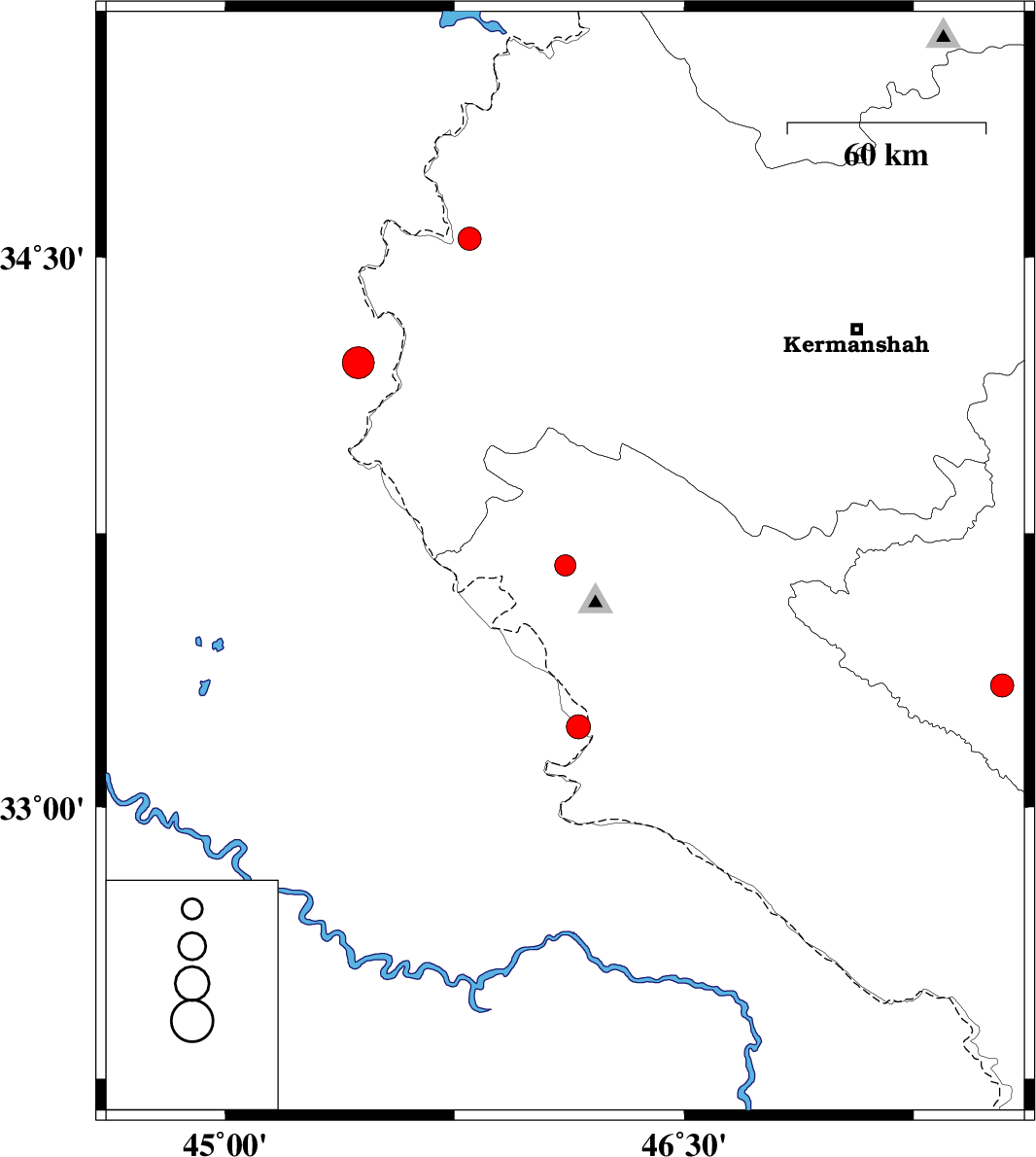 | 2025/11/01 | 11:25:02.5 | 14:55:02.5 | 34.214 | 45.435 | 12 | ML:4.7 | Iraq, 36 km South-West of Qasr-E-Shirin | ||
