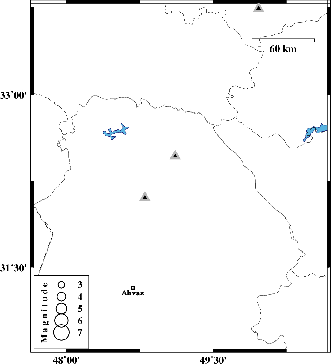 | 2025/11/15 | 05:56:18.1 | 09:26:18.1 | 32.283 | 49.167 | 12 | ML:3.6 | Khoozestan Province, 13 km South of Lali |