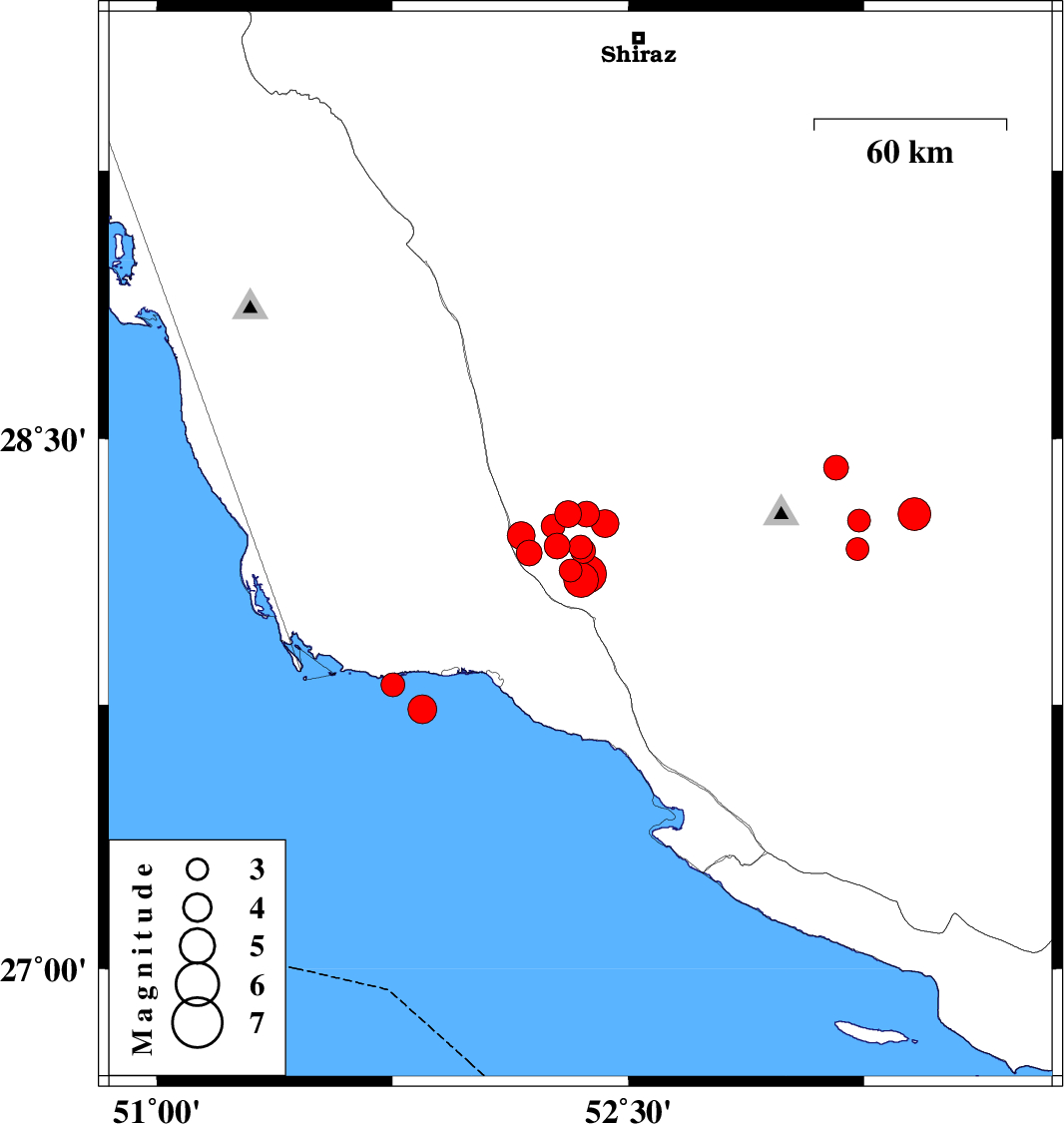 2025/01/07 13:08:29.8 16:38:29.8 28.17852.18512 ML:3.6 Fars Province, 41 km North-East of Bandar-e kangan