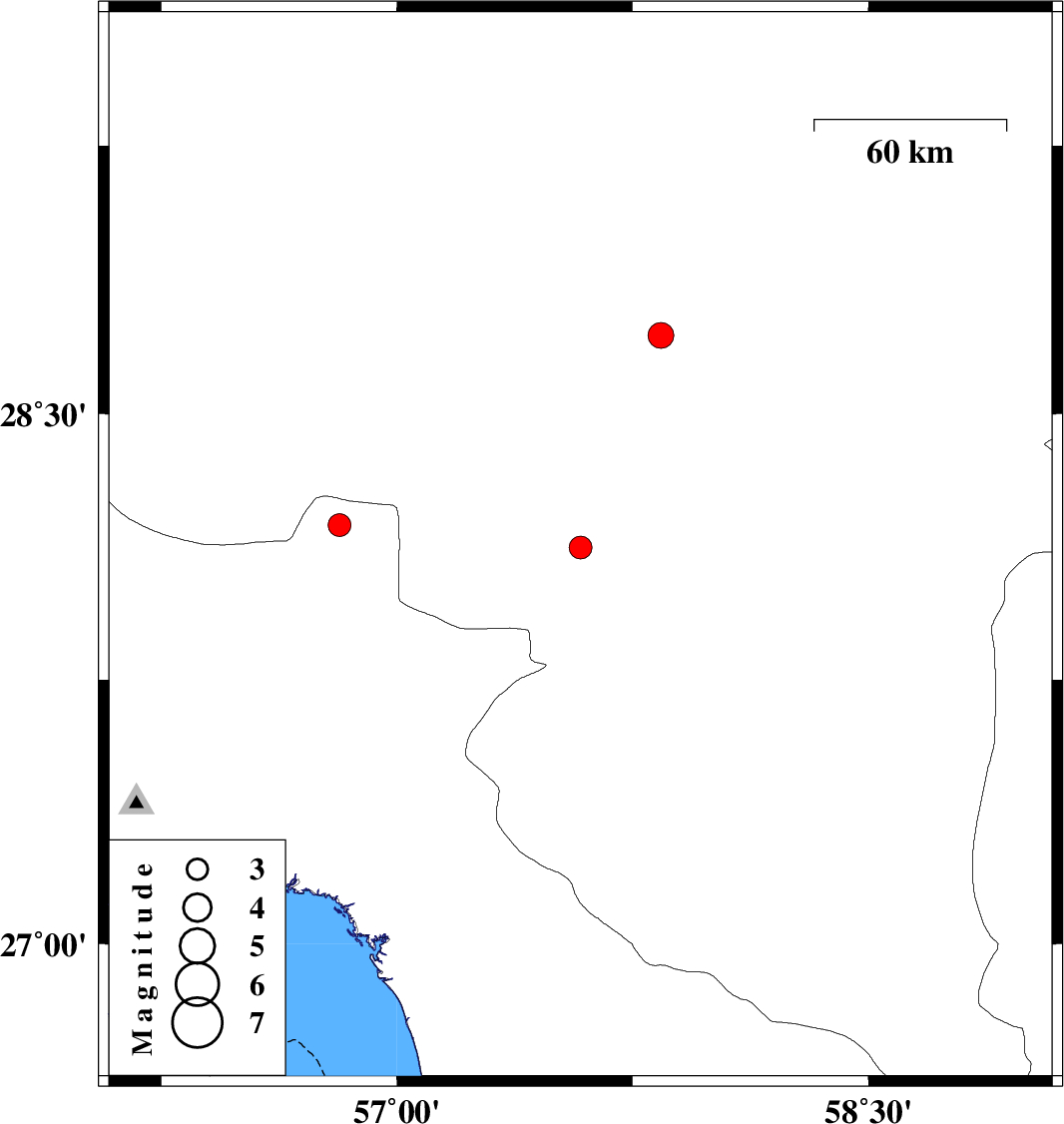 | 2020/07/08 | 06:33:06.2 | 11:03:06.2 | 28.72 | 57.84 | 10 | ML:3.7 | Kerman Province, 11 km -East of Jiroft |