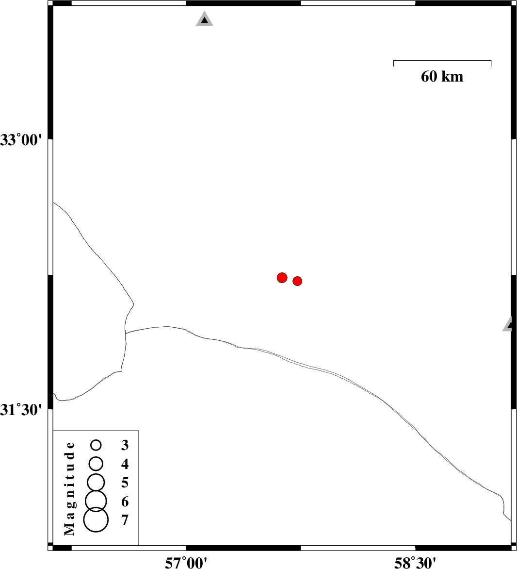| 2025/11/17 | 10:54:38.5 | 14:24:38.5 | 32.214 | 57.727 | 12 | ML:2.7 | Yazd Province, 136 km North-East of Ravar |