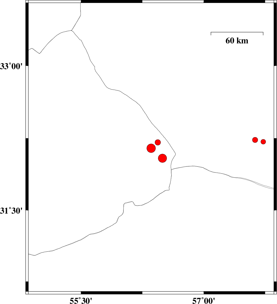 Map Region : lat:30.646-33.646  lon:54.857-57.857