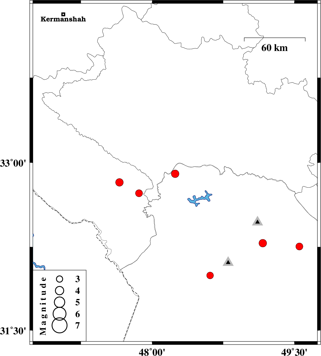 | 2025/11/27 | 17:15:31.8 | 20:45:31.8 | 32.901 | 48.243 | 12 | ML:3.7 | Khoozestan Province, 50 km North-West of Andimeshk | ||