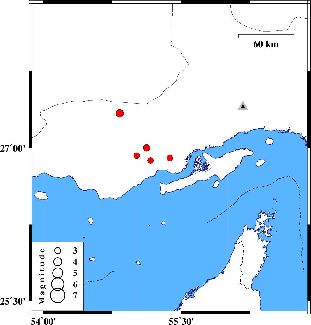 | 2025/11/29 | 10:08:06.3 | 13:38:06.3 | 26.9 | 55.375 | 12 | ML:2.9 | Hormozgan Province, 67 km North-East of Bandar-e lengeh | ||