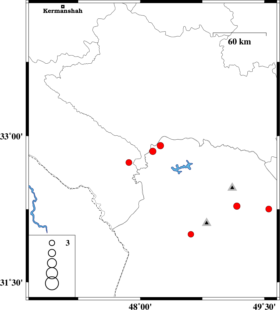 | 2025/11/30 | 11:39:20.6 | 15:09:20.6 | 32.843 | 48.151 | 14 | ML:3.6 | Khoozestan Province, 47 km North-West of Andimeshk | ||