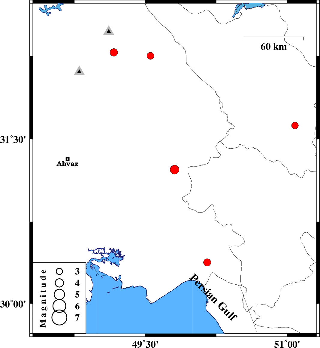 | 2025/11/10 | 00:56:09.1 | 04:26:09.1 | 30.377 | 50.153 | 12 | ML:3.5 | Khoozestan Province, 26 km South of Behbahan |