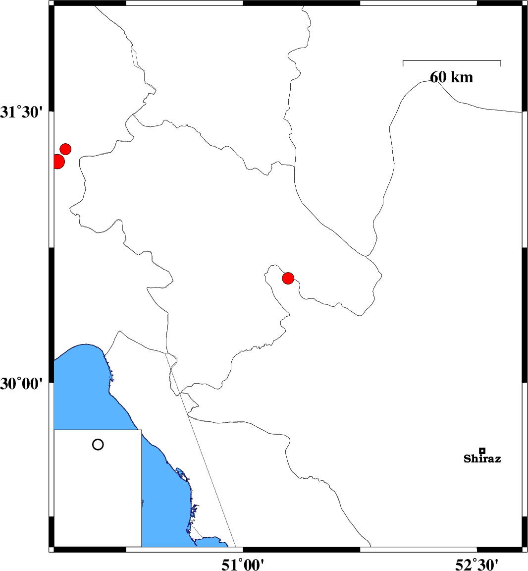 | 2025/12/06 | 01:31:12.9 | 05:01:12.9 | 31.292 | 49.861 | 12 | ML:3.2 | Khoozestan Province, 25 km South of Bagh Malek | ||