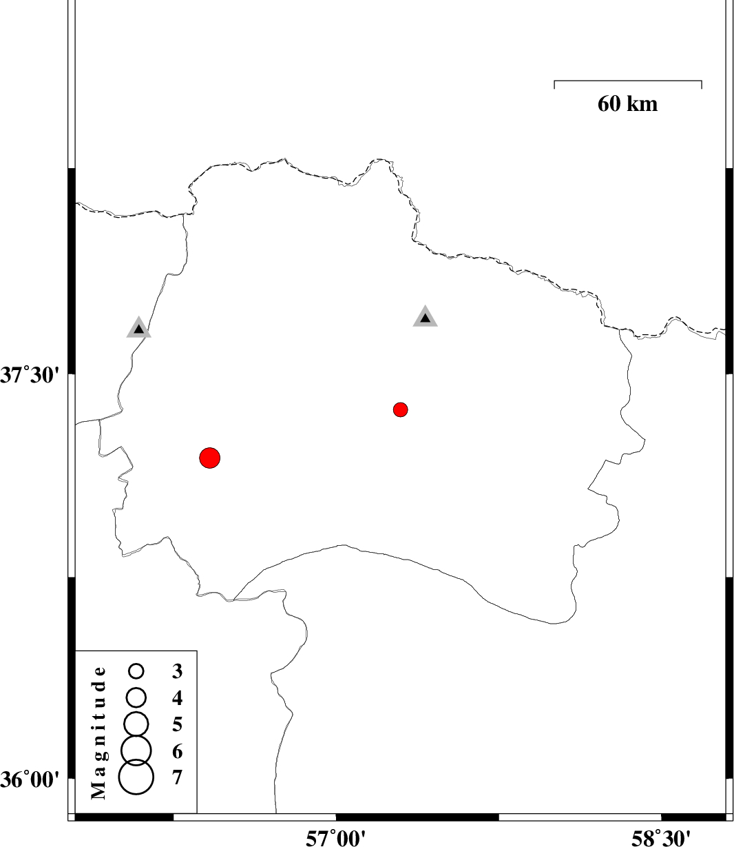 | 2025/11/26 | 21:22:09.9 | 00:52:09.9 | 37.368 | 57.296 | 12 | ML:3 | Khorasan(north) Province, 12 km South of Bojnurd | ||