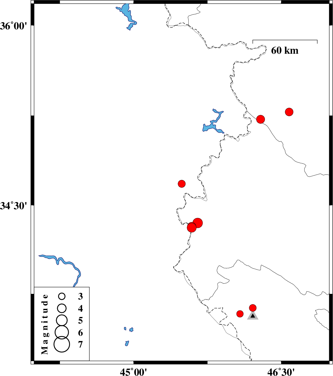 | 2020/07/12 | 11:14:01.6 | 15:44:01.6 | 34.679 | 45.488 | 8 | ML:3.4 | Iraq, 20 km North of Qasr-E-Shirin | ||