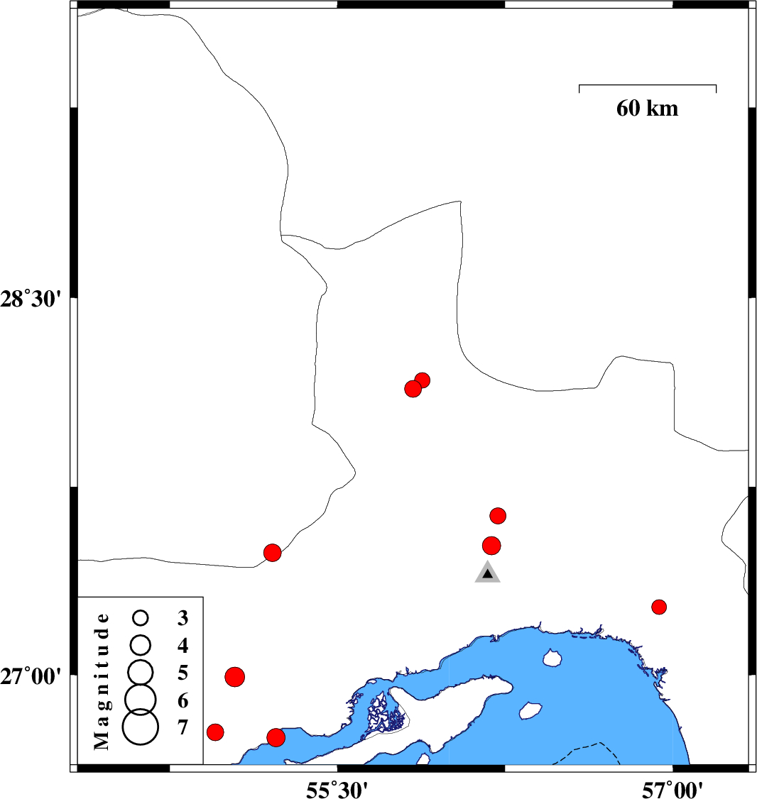 | 2026/01/02 | 04:56:42.7 | 08:26:42.7 | 27.634 | 56.218 | 17 | ML:3.2 | Hormozgan Province, 50 km North of Bandar-e abbas | ||