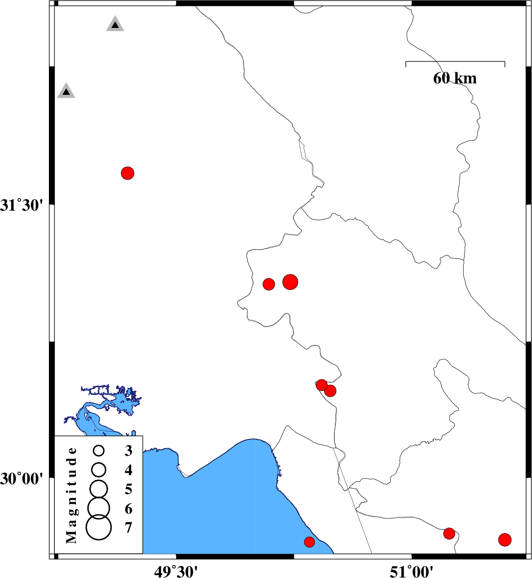 | 2025/12/26 | 07:55:40.9 | 11:25:40.9 | 30.51 | 50.427 | 12 | ML:3.3 | Kohkiluieh va boyerahmad Province, 20 km -East of Behbahan | ||