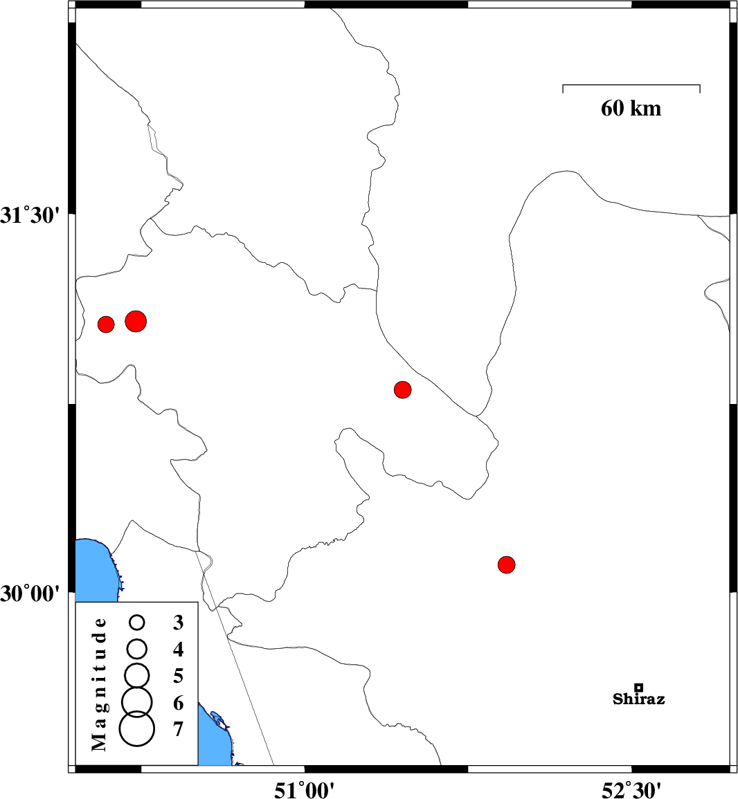 | 2026/01/09 | 23:45:47.4 | 03:15:47.4 | 30.806 | 51.449 | 12 | ML:3.5 | Kohkiluieh va boyerahmad Province, 7 km of Sisakht | ||