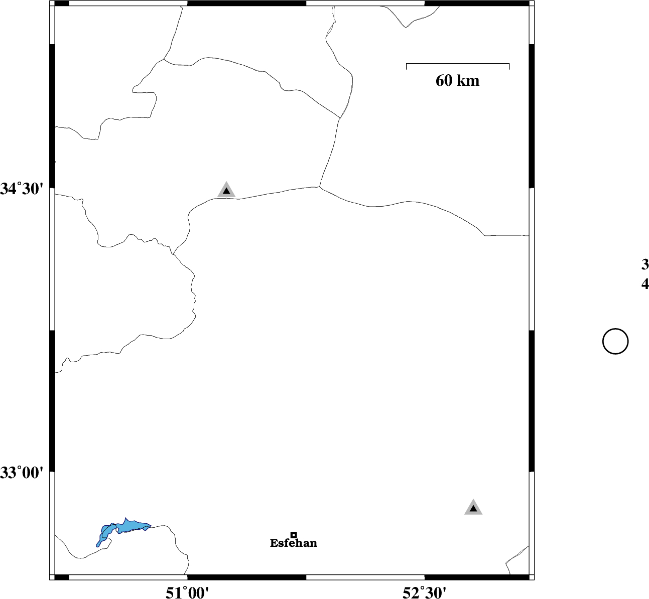 | 2026/01/13 | 23:22:35.2 | 02:52:35.2 | 33.949 | 51.66 | 12 | ML:3.6 | Esfahan Province, 20 km -East of Kashan |