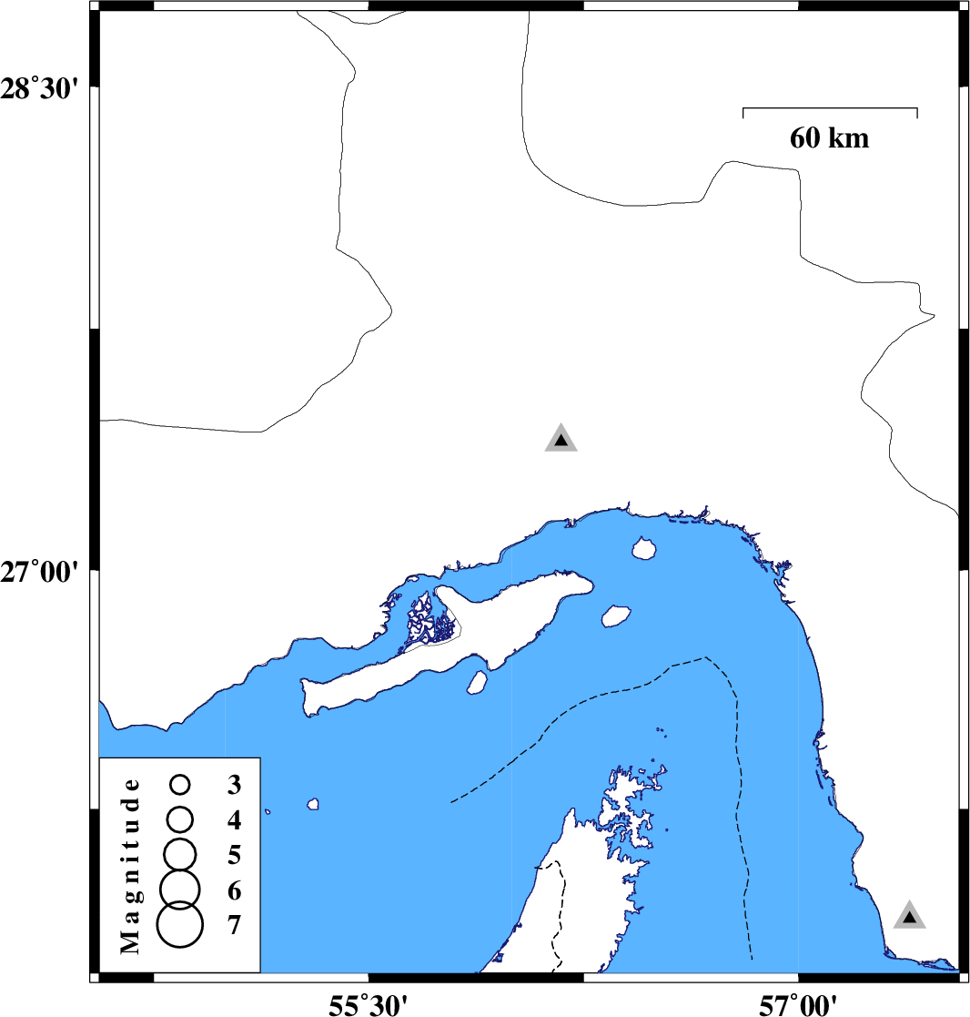 | 2026/01/14 | 13:19:59.0 | 16:49:59.0 | 27.234 | 56.06 | 12 | ML:3.4 | Hormozgan Province, 23 km -West of Bandar-e abbas |