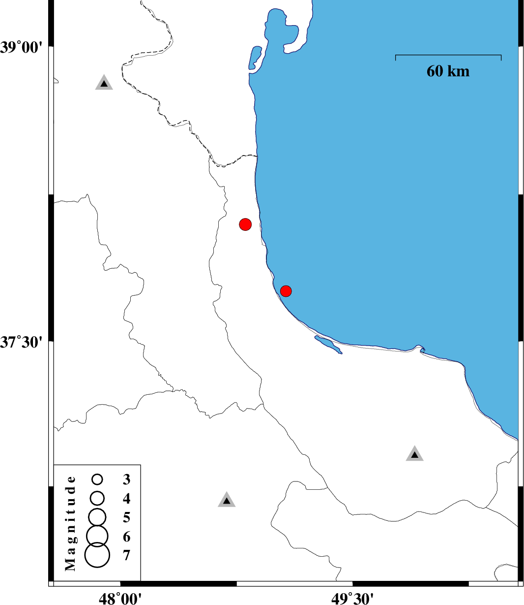 | 2026/01/18 | 09:57:45.1 | 13:27:45.1 | 37.757 | 49.068 | 16 | ML:3.2 | Caspian Sea, 15 km -East of Hashtpar |
