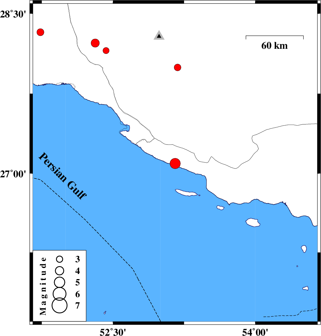 | 2025/12/24 | 00:20:21.2 | 03:50:21.2 | 28.326 | 51.735 | 8 | ML:3.4 | Bushehr Province, 51 km South-East of Khormog |
