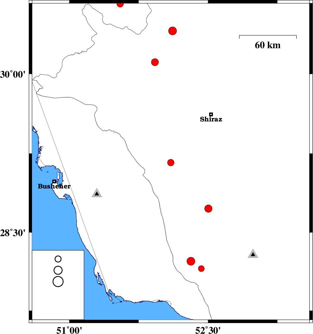 | 2026/01/03 | 17:24:44.7 | 20:54:44.7 | 28.154 | 52.427 | 12 | ML:3 | Fars Province, 37 km North-East of Jam | ||