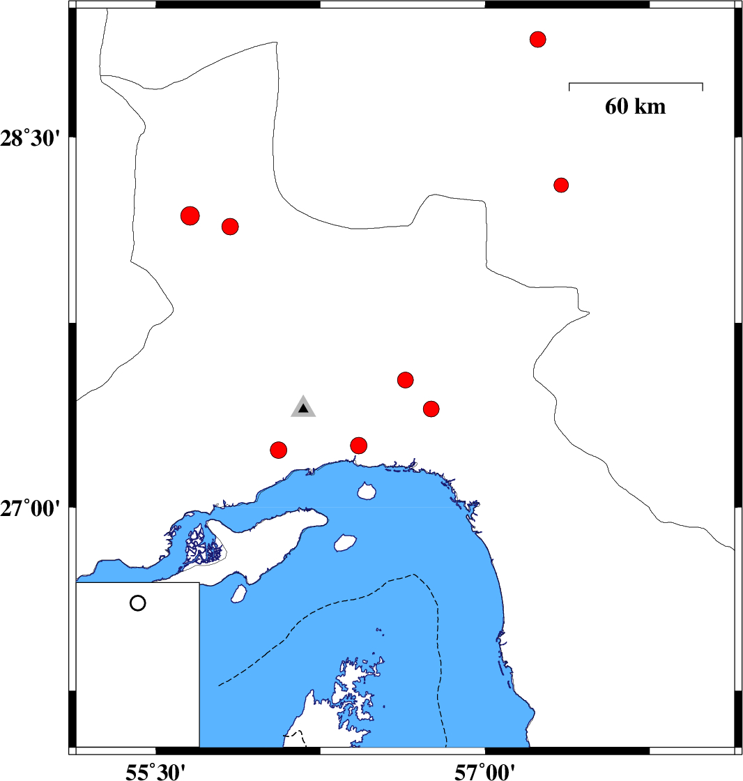 | 2026/01/27 | 00:11:28.4 | 03:41:28.4 | 27.252 | 56.425 | 8 | ML:3.4 | Hormozgan Province, 16 km -East of Bandar-e abbas | ||