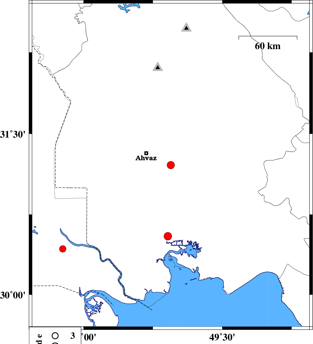 Map Region : lat:29.7-32.7  lon:47.443-50.443