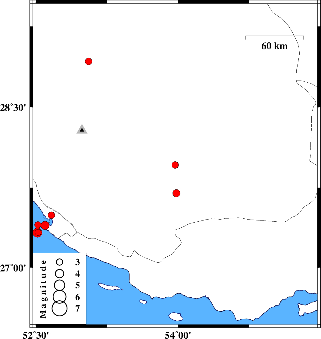 | 2026/02/17 | 09:05:46.9 | 12:35:46.9 | 27.698 | 53.982 | 12 | ML:3.5 | Fars Province, 35 km -West of Lar | ||