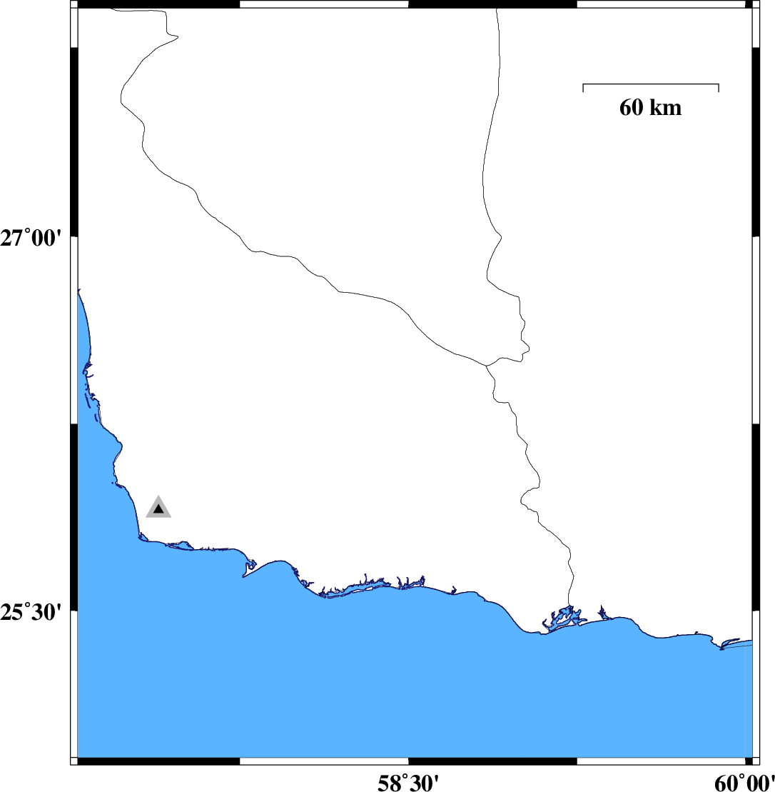 | 2026/02/20 | 05:30:29.1 | 09:00:29.1 | 26.406 | 58.529 | 12 | ML:3.5 | Hormozgan Province, 115 km North-East of Jask |