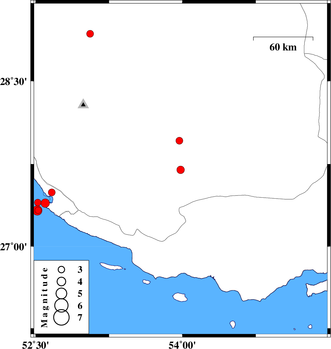 | 2026/02/17 | 09:05:46.9 | 12:35:46.9 | 27.698 | 53.982 | 12 | ML:3.5 | Fars Province, 35 km -West of Lar | ||
