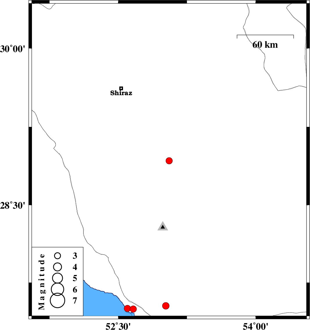 | 2026/02/08 | 06:03:42.5 | 09:33:42.5 | 27.523 | 53.02 | 12 | ML:3.4 | Fars Province, 13 km -East of Mehr |