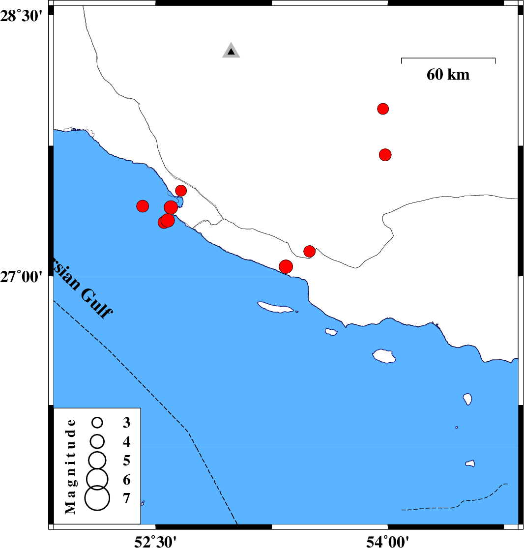 | 2026/02/19 | 03:43:06.5 | 07:13:06.5 | 27.32 | 52.578 | 12 | ML:4 | Persian Gulf, 40 km South-West of Mehr | ||