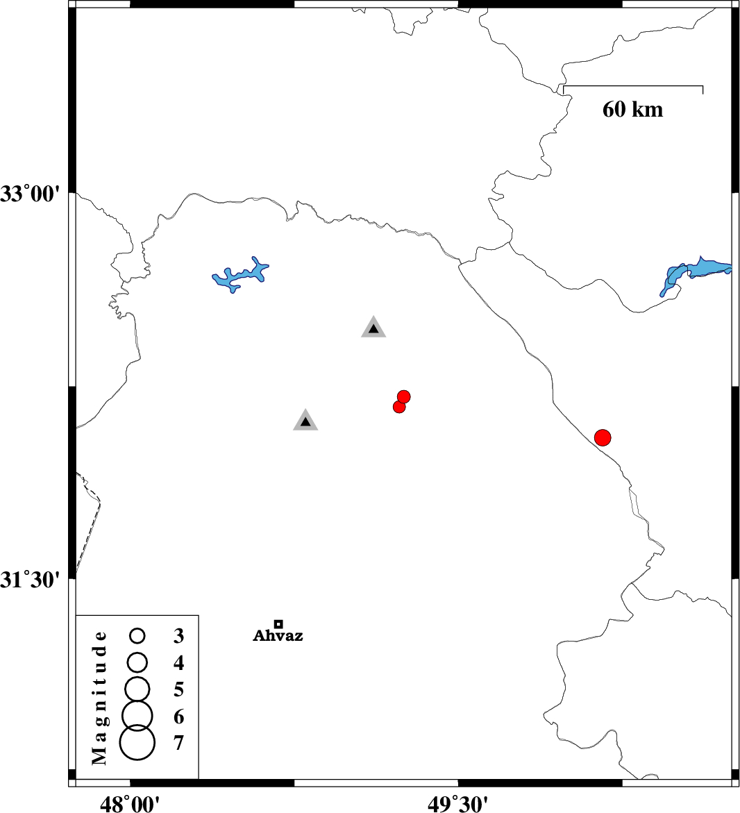 | 2006/06/01 | 23:45:18.1 | 03:15:18.1 | 32.17 | 49.23 | 18 | ML:2.6 | 26 km North of Masjed Soleyman, Khoozestan Province | ||