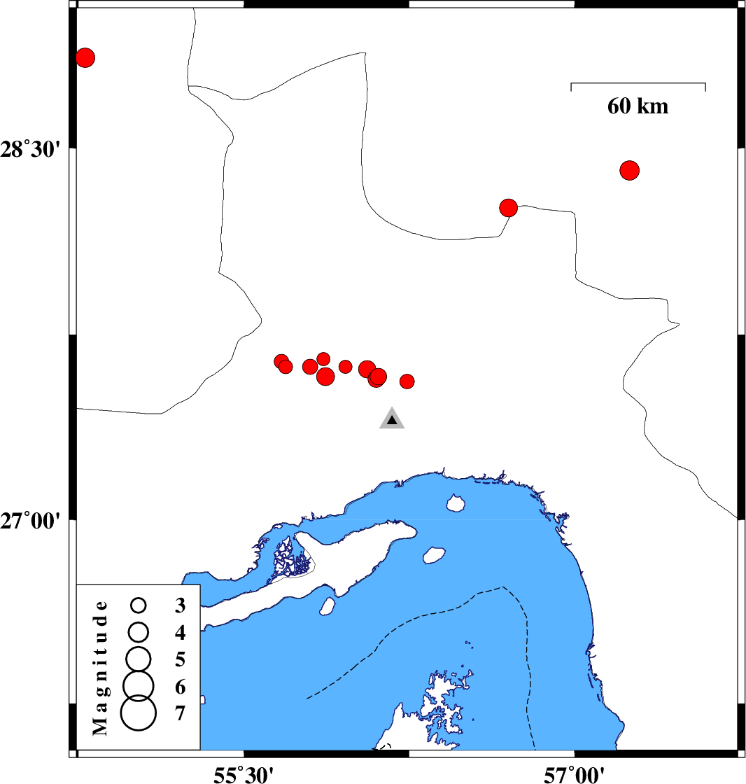 2006/04/07 10:49:11.6 14:19:11.6 27.6255.6915 ML:2.8 75 km North-West of Bandar-e abbas, Hormozgan Province