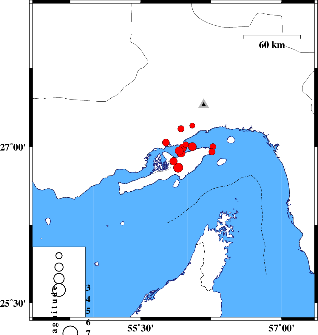 2006/06/30 15:06:11.3 18:36:11.3 26.9455.938 ML:4.1 Persian Gulf, 33 km West of Qeshm