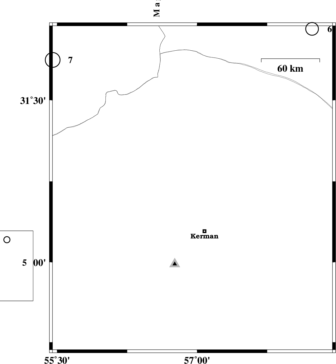 | 2006/09/11 | 04:34:18.3 | 08:04:18.3 | 30.68 | 56.95 | 18 | ML:3 | 39 km South-East of Zarand, Kerman Province |