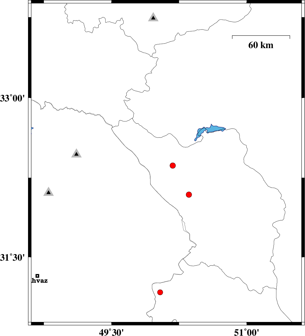 | 2006/08/07 | 00:03:14.4 | 03:33:14.4 | 32.68 | 48.73 | 14 | ML:2.7 | 43 km North-East of Andimeshk, Khoozestan Province |
