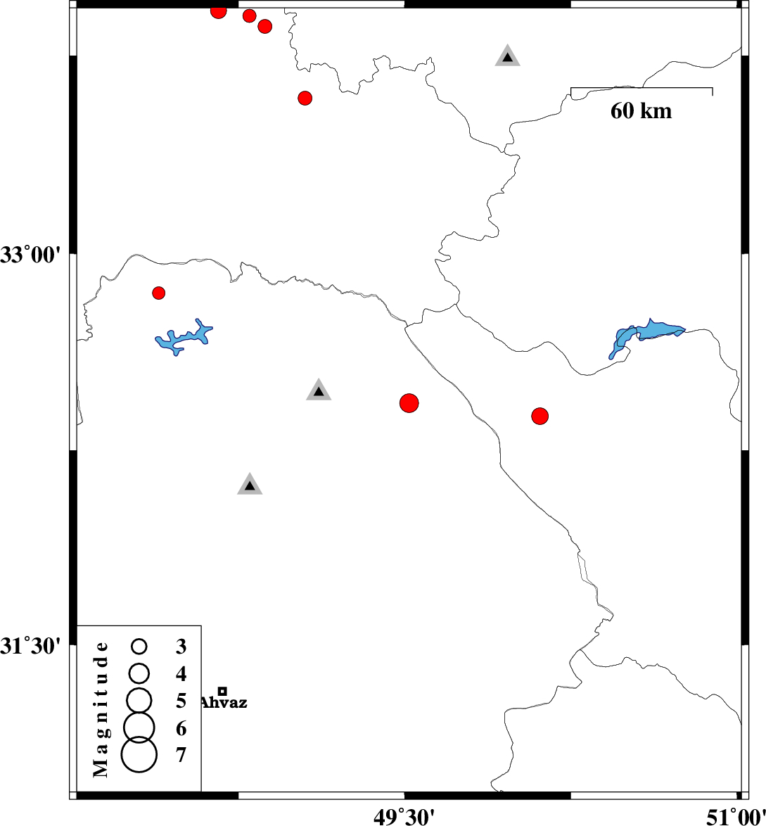 | 2006/08/14 | 10:45:13.3 | 14:15:13.3 | 32.85 | 48.39 | 18 | ML:2.5 | 43 km North of Andimeshk, Khoozestan Province | ||