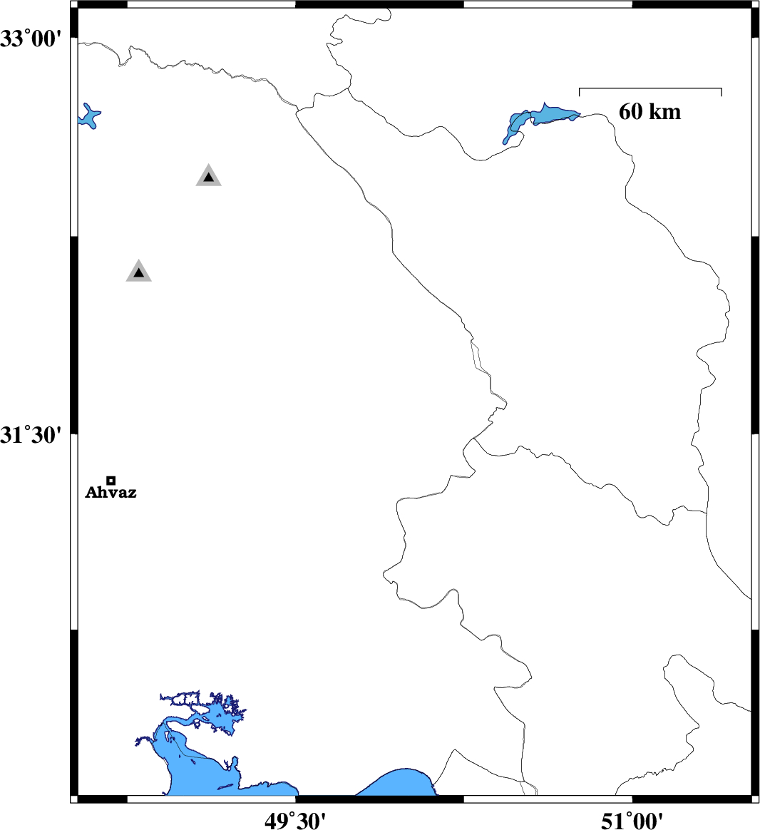 | 2006/09/21 | 05:32:26.2 | 09:02:26.2 | 31.61 | 50.03 | 16 | ML:2.9 | 15 km East of Bagh Malek, Khoozestan Province | ||