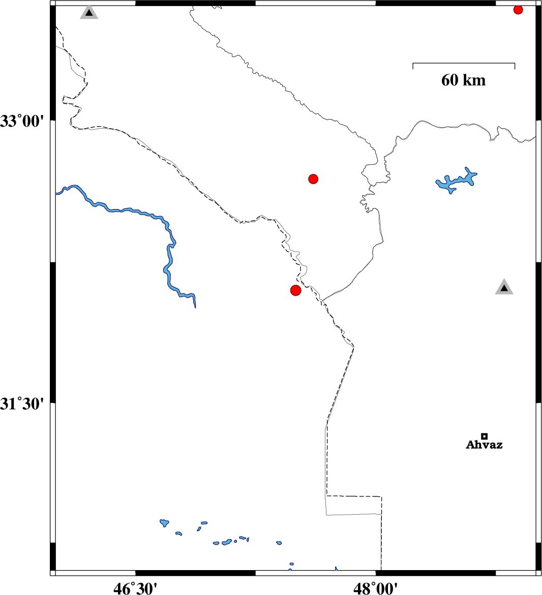 | 2006/09/14 | 23:28:46.1 | 02:58:46.1 | 32.69 | 47.61 | 18 | ML:2.7 | 29 km South-East of Abdanan, Ilam Province |