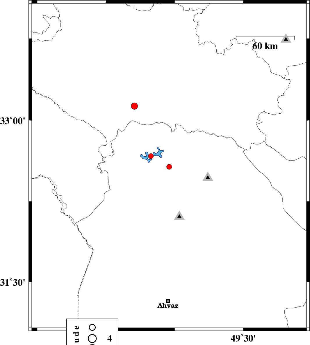 | 2006/08/19 | 00:01:23.6 | 03:31:23.6 | 32.67 | 48.49 | 15 | ML:2.6 | 26 km North-East of Andimeshk, Khoozestan Province |