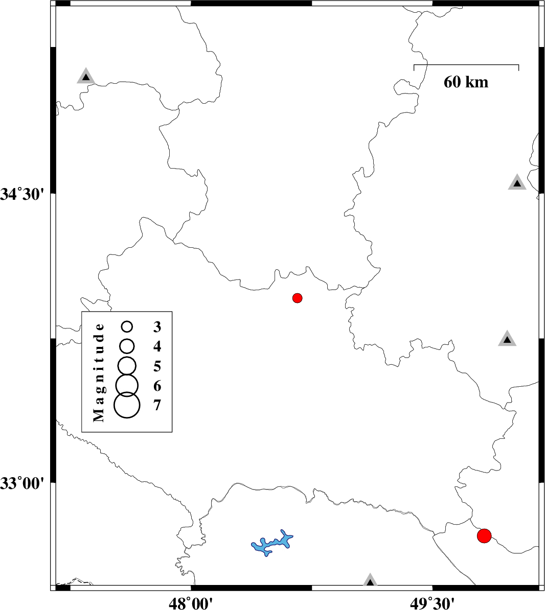 | 2006/07/26 | 12:05:56.9 | 15:35:56.9 | 33.96 | 48.66 | 18 | ML:2.7 | 11 km Borujerd, Lorestan Province | ||