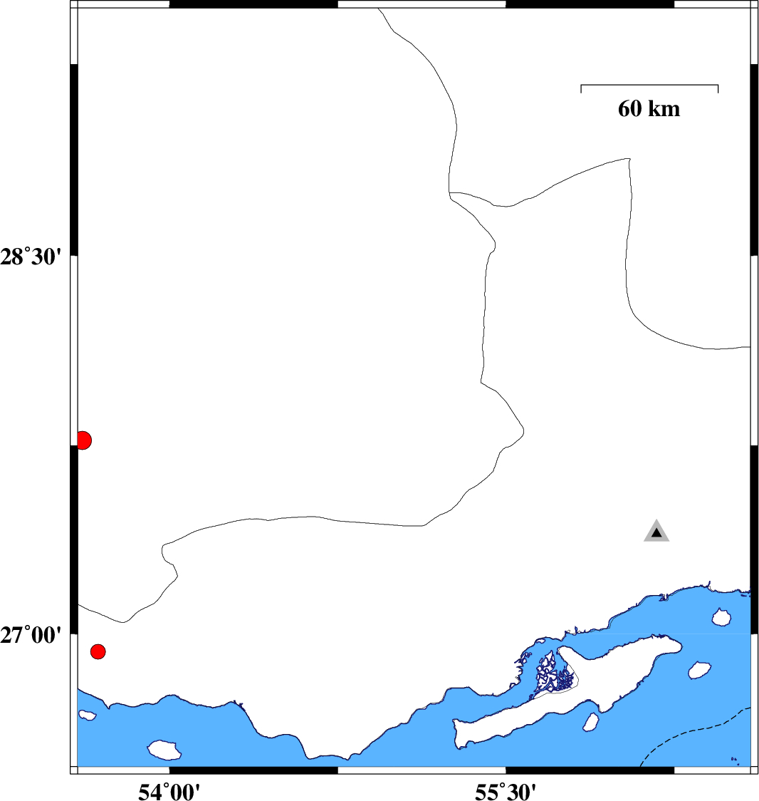 | 2006/07/22 | 05:56:41.1 | 09:26:41.1 | 26.88 | 55.96 | 8 | ML:3 | Persian Gulf, 32 km West of Qeshm |