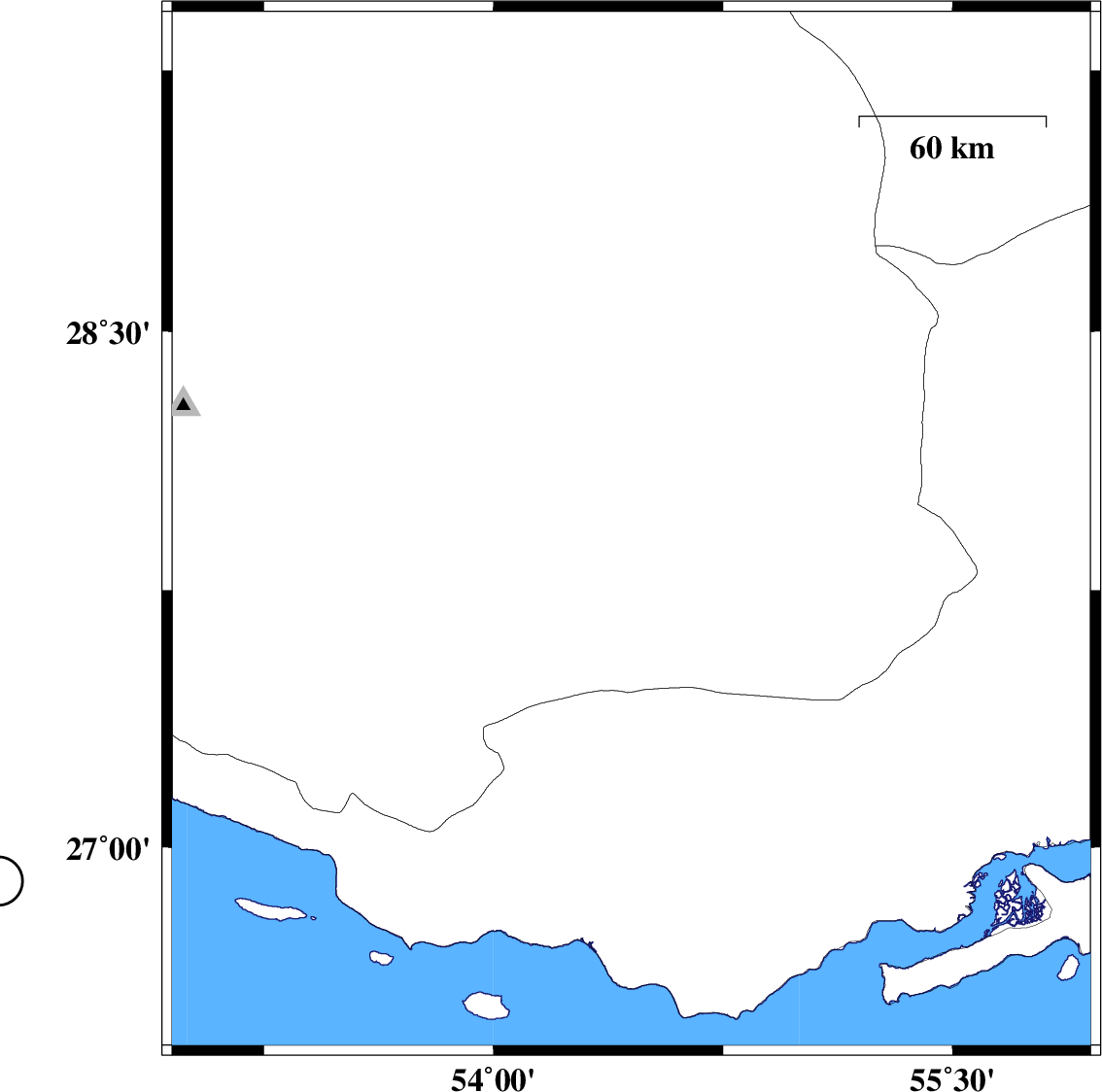 | 2006/10/13 | 10:19:54.9 | 13:49:54.9 | 27.64 | 54.36 | 18 | ML:4.3 | 4 km Lar, Fars Province |
