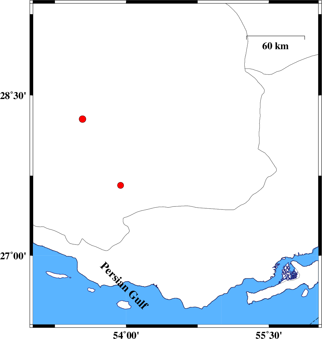 | 2006/10/10 | 22:42:35.0 | 02:12:35.0 | 27.59 | 55.97 | 14 | ML:2.9 | 55 km North-West of Bandar-e abbas, Hormozgan Province |
