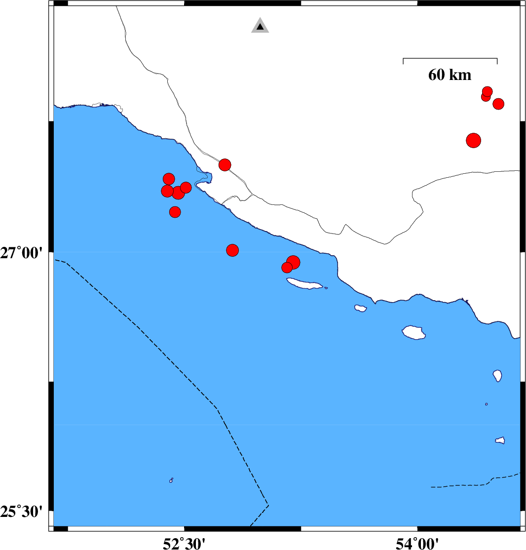 2006/09/27 01:04:00.9 04:34:00.9 27.0152.8125 ML:3.5 Persian Gulf, 50 km South-West of Lamerd