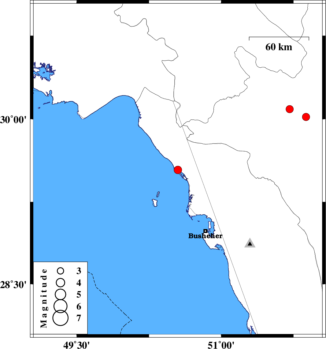 | 2006/10/22 | 21:54:18.9 | 01:24:18.9 | 29.54 | 50.55 | 43 | ML:3.6 | Persian Gulf, 4 km Bandar-e genaveh | ||